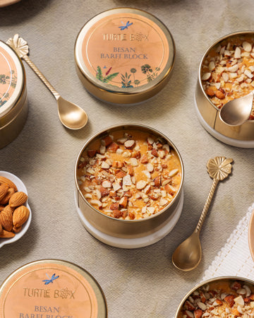When poppy seeds from our half-Bengali kitchen met our travel memories from Istanbul, our first Turtle Box flavour was born! Enjoy almonds, cashews, pistachios and pine nuts laced with honey and sprinkled with poppy seeds for the right crunch!